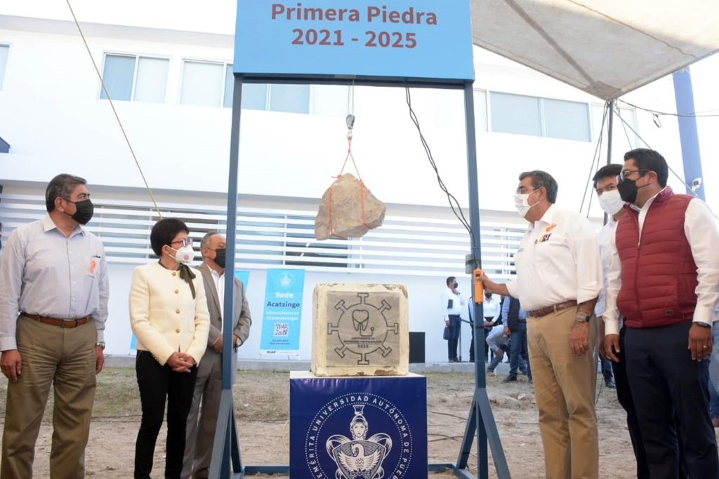 Con el respaldo y en compañía del gobernador Sergio Salomón Céspedes Peregrina y de los ediles Abraham Martínez Jiménez y José Huerta Espinoza, de Acatzingo y Tepeaca, respectivamente, la Rectora María Lilia Cedillo Ramírez colocó la primera piedra de los edificios que albergarán nuevos programas educativos en el Complejo Regional Centro: las licenciaturas en Enfermería, Estomatología y Derecho, lo que abona al crecimiento y compromiso por llevar educación de calidad a esta región.