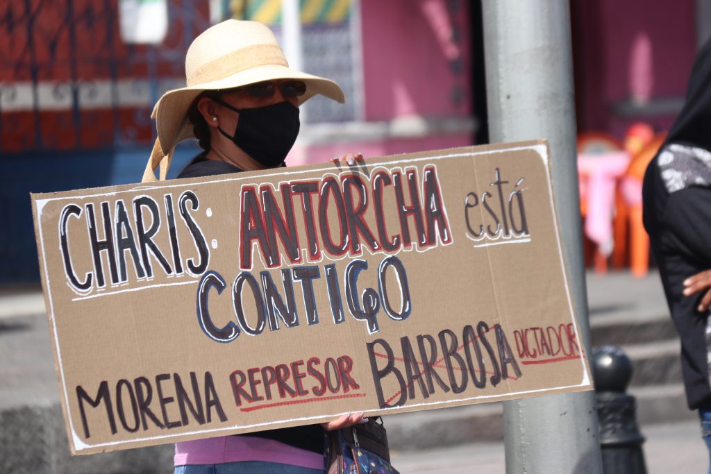 Con lonas y cartulinas con leyendas como #TodosSomosChari, “Chari, no estás sola”, “Alto al acoso contra Antorcha” y “Barbosa Represor”, el Movimiento Antorchista denunció que Miguel Barbosa fabrica delitos en contra de los líderes populares por oponerse al mal gobierno que encabeza y por la fuerza de masas que ellos tienen.