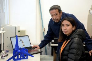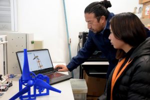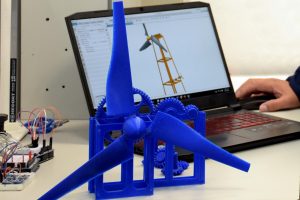Además, Guadalupe Jiménez Roano, estudiante de Ingeniería Mecánica y Eléctrica, quien participó en el diseño de la plataforma giratoria, cuyo propósito es que la turbina se adapte a la dirección del viento. En este proyecto, dijo, “aprendí acerca de los procesos de fabricación, mediante un diseño asistido por computadora (CAE) para ser llevado a la realidad. Esto me da una dirección e idea del área en la que quiero desempeñarme”.