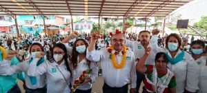 Tras el recorrido y para dar inicio con el arranque oficial de la campaña política, los cientos de simpatizantes se dieron cita en la cancha de usos múltiples de la junta auxiliar de Tenango de las Flores, donde López Ángulo fue recibido con un ritual tradicional.