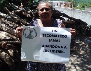 Motivo por el cual varios habitantes de Tecomatlán, a través de cartulinas, se manifiestan y expresan su inconformidad en contra del gobierno, así como su solidaridad y respaldo a la organización y a sus líderes.