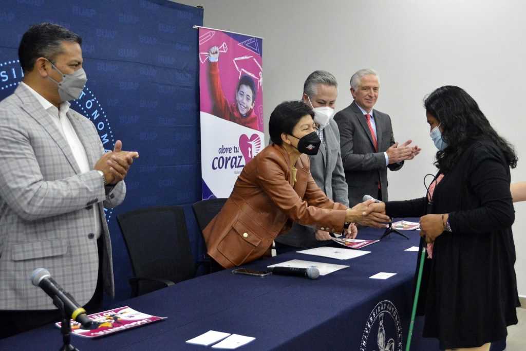 En la presentación de este programa denominado ¡Aguanta, no te vayas! y la entrega simbólica de cinco becas de un total de 25, la Rectora María Lilia Cedillo Ramírez reiteró el respaldo de la BUAP a su comunidad estudiantil. “Nuestro compromiso es darles todas las herramientas académicas que les servirán en su desempeño profesional; pero también, en muchos de los casos, brindarles la oportunidad de terminar sus carreras y de que sus padres tengan tranquilidad económica”.