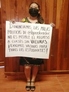 Para finalizar mencionó que, aunque es necesario que niños y jóvenes regresen a clases porque se han rezagado mucho, en primer lugar, está su integridad física, por lo que exhortó al presidente a brindar mantenimiento a cada uno de los espacios educativos aún al más apartado y a dotar a maestros de material sanitario para trabajar con seguridad, pero sobre todo proveer a toda la población de vacunas.
