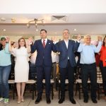 Lo acompañaron los virtuales ganadores de la contienda en las diputaciones, su equipo de campaña y miembros de los partidos de la coalición.