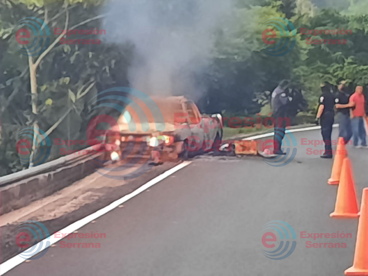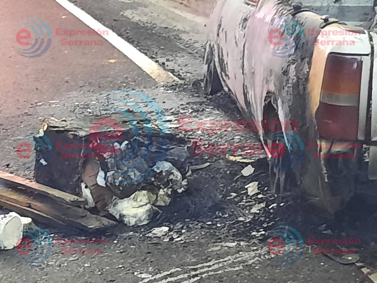 Xicotepec, Puebla. Una camioneta Courier con placas del estado de Veracruz fue hallada incendiándose sobre la carretera Federal México-Tuxpan, a la altura del acceso a Las Pilas y San Lorenzo en el municipio de Xicotepec.