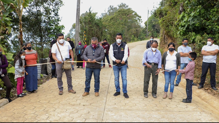 sana distancia el presidente municipal Miguel Ángel Morales Morales inauguró la pavimentación con concreto hidráulico de la calle Juan de la Barrera en Mazacoatlán.