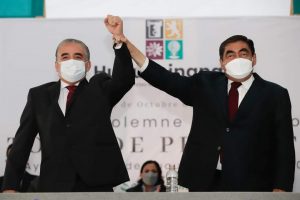 Huauchinango de Degollado, Puebla, a 15 de octubre del 2021.- Durante Sesión Solemne de Cabildo, llevada a cabo en la explanada del Jardín Central de la Cabecera Municipal, el Gobernador Lic. Miguel Barbosa Huerta, rindió protesta de ley al Ing. Rogelio López Angulo como Presidente Municipal Constitucional del Municipio de Huauchinango de Degollado, Puebla, así como a las y los integrantes del Ayuntamiento para el periodo 2021-2024.