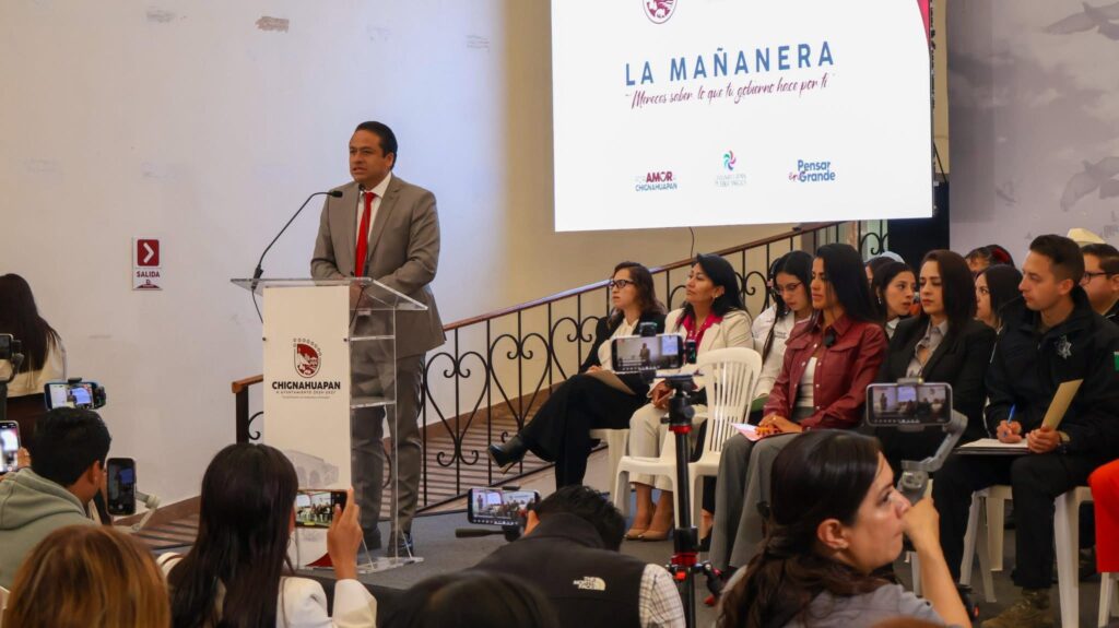 Chignahuapan, Puebla. Como cada lunes en un ejercicio de apertura y responsabilidad pública, el presidente municipal de Chignahuapan, Juan Rivera Trejo, encabezó la conferencia de prensa denominada “La Mañanera Municipal” que es entrelazar la comunicación directa y la participación ciudadana.